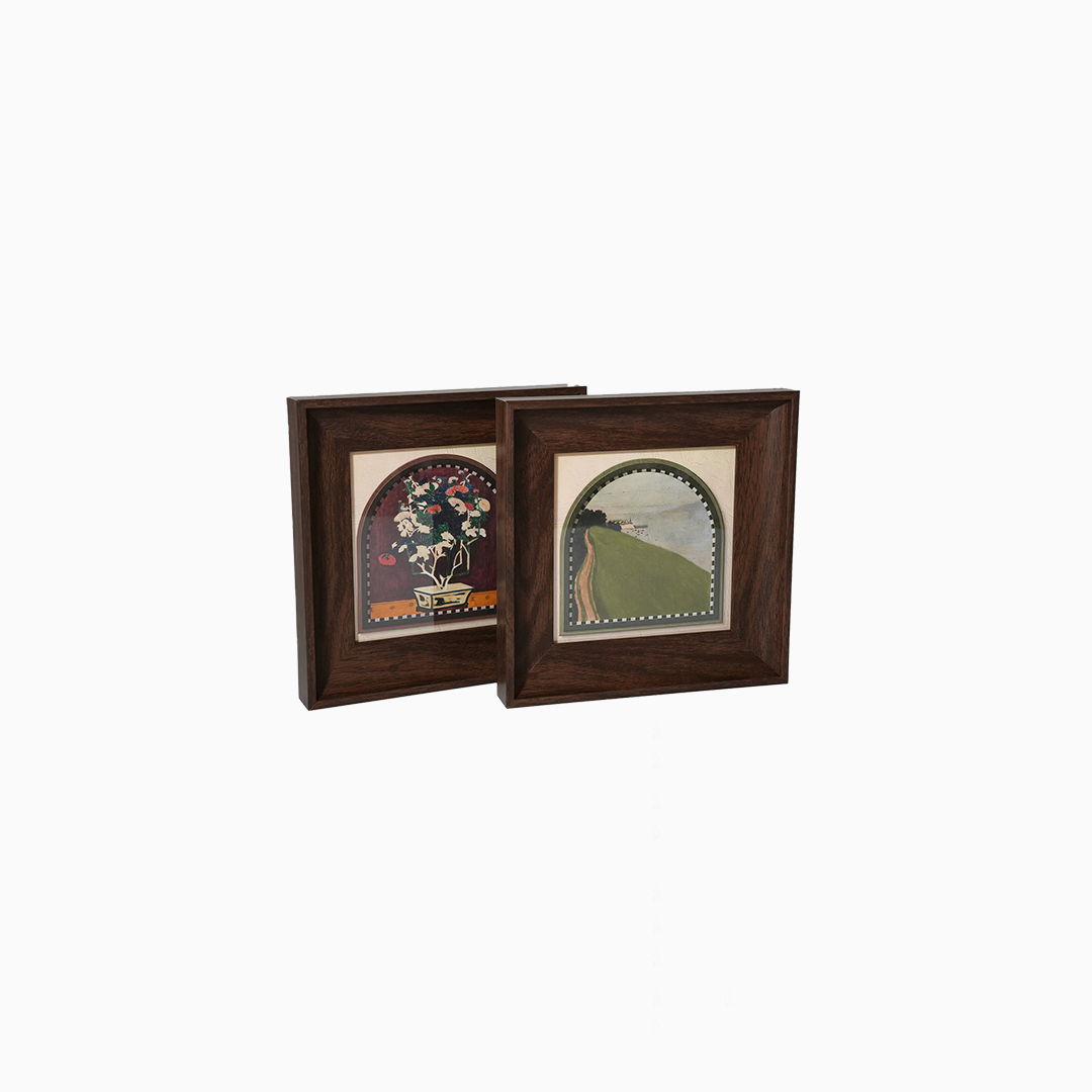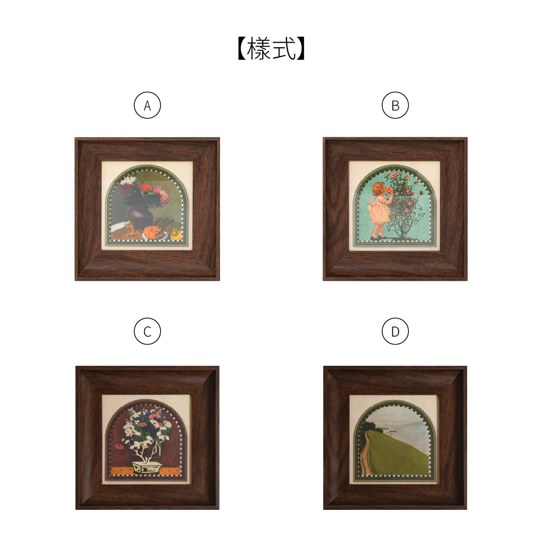 經典木質相框搭配復古插畫,畫面細膩又帶點童趣氛圍,為空間增添一份復古優雅感,可以一組4個放在轉角處,也可以單個掛起來。