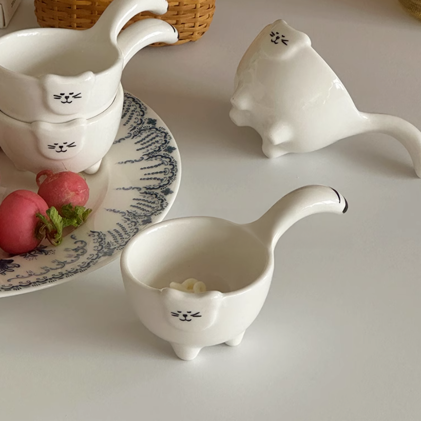 【商品】立體長尾小貓咪造型,搭配細緻陶瓷工藝,可愛又實用適合,盛裝醬油、醋、番茄醬、沙拉醬等多種調味,也能擺放小食點心。