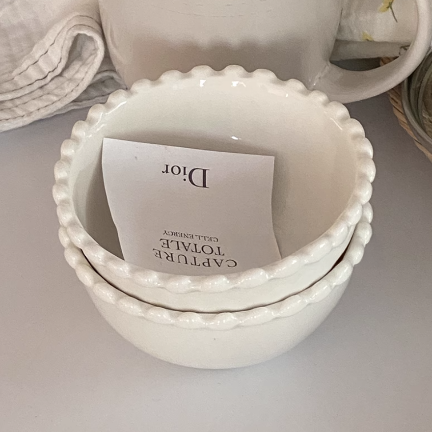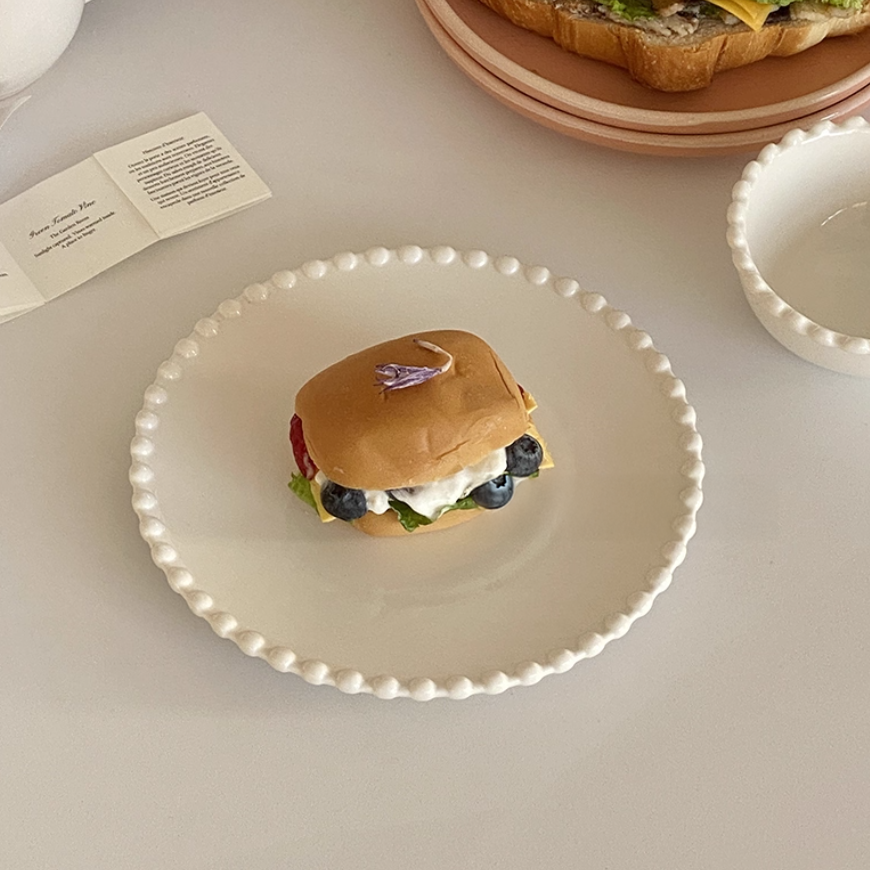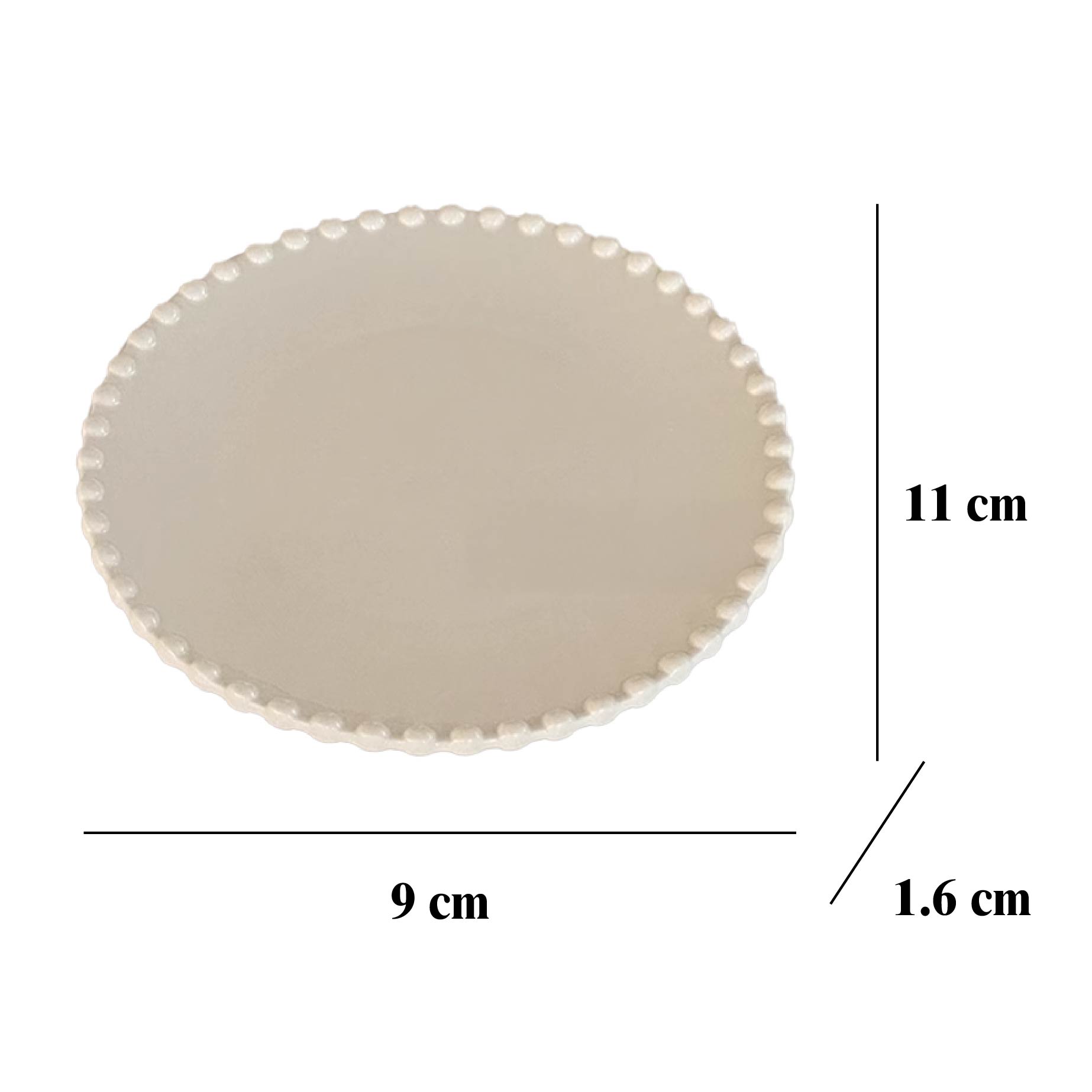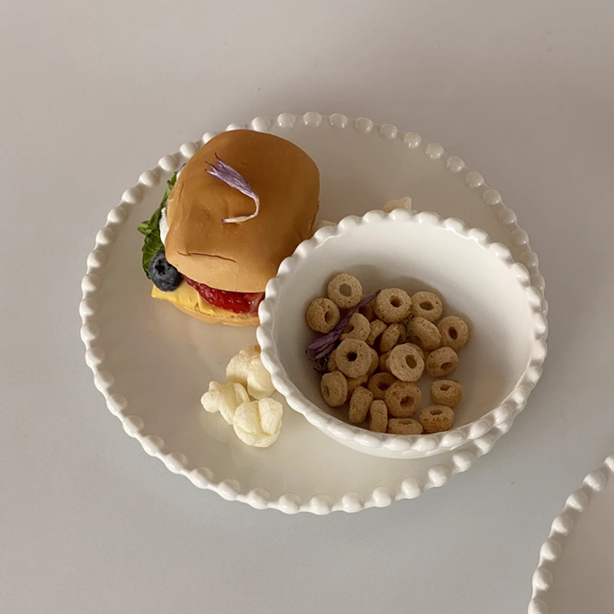 採用純白陶瓷搭配優雅珍珠盤緣設計,復古中帶有細膩質感,適合盛裝甜點、西餐、早餐或糕點,亦可搭配小碗使用,打造豐富餐桌層次。