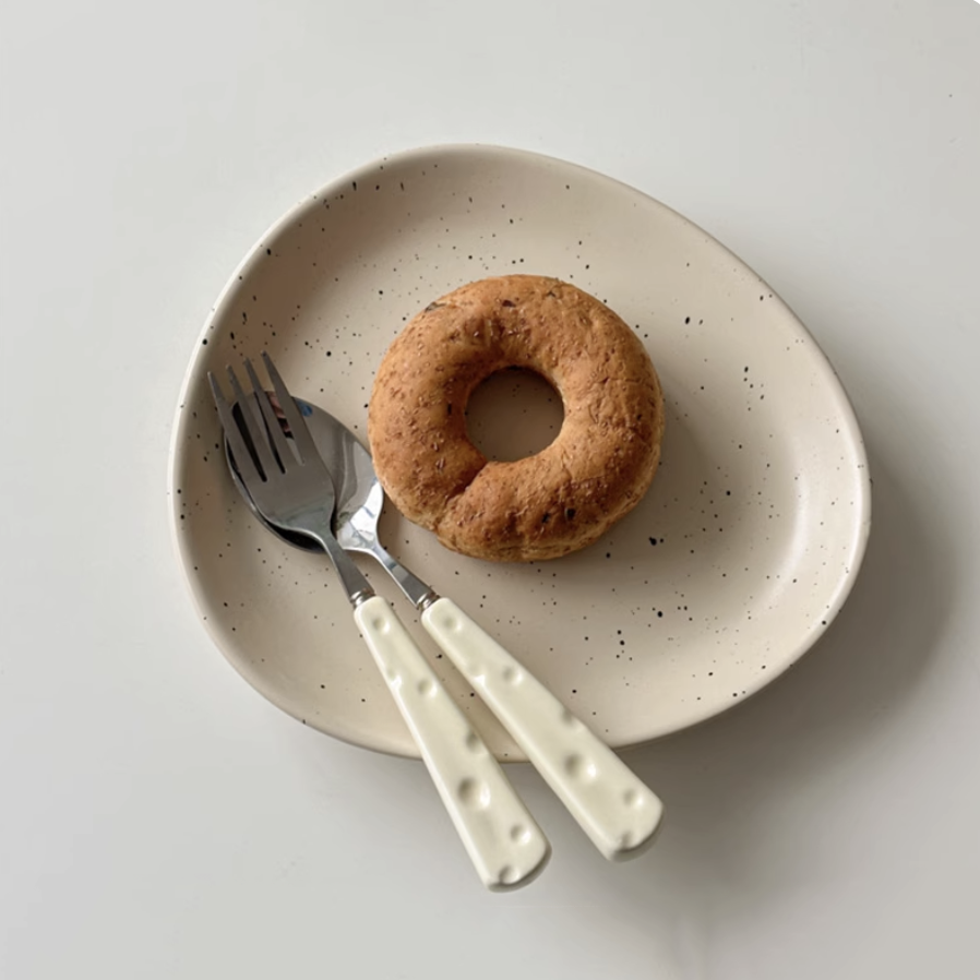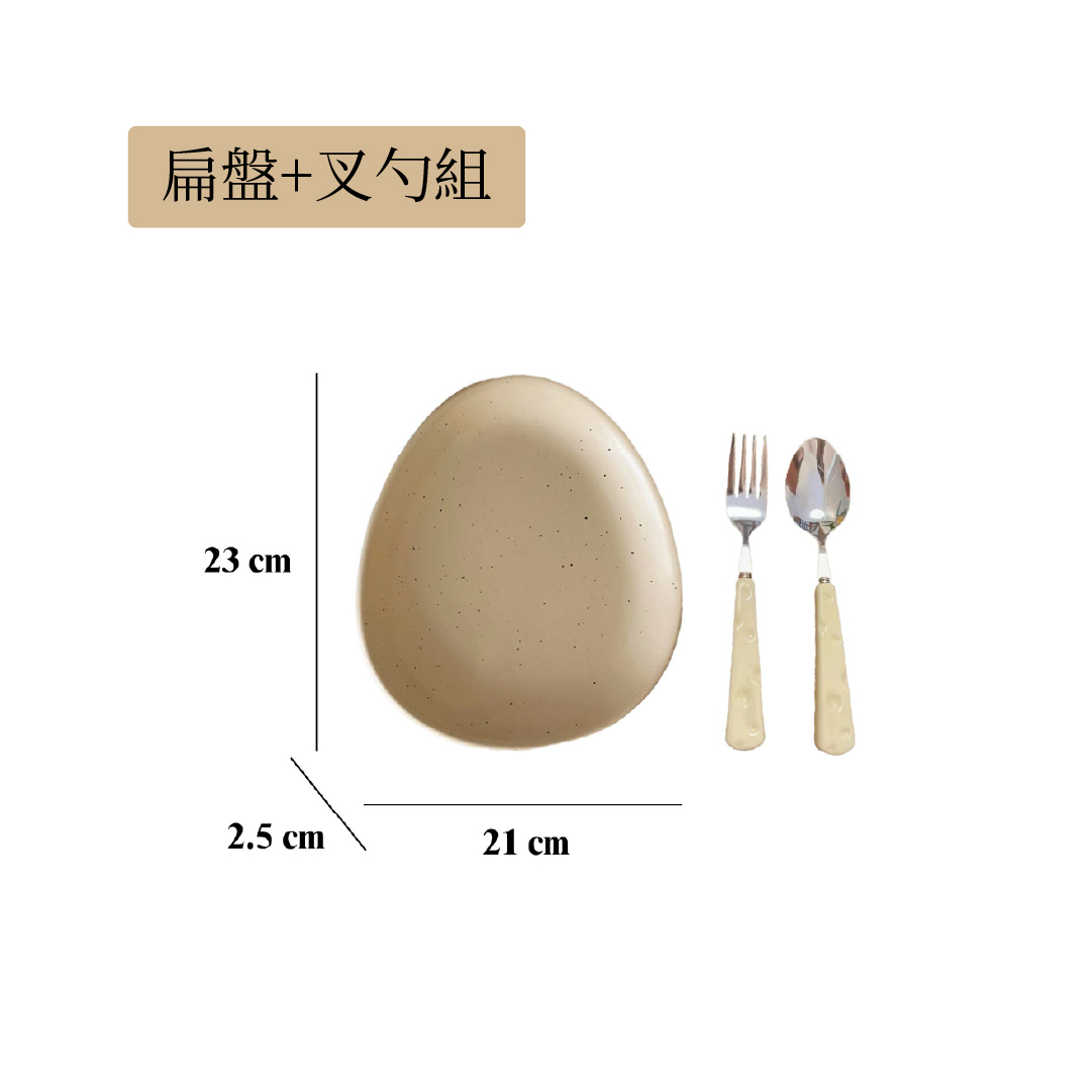 ・復古點點陶瓷盤_扁盤+叉勺組 長寬高 23 x 21 x 2.5cm