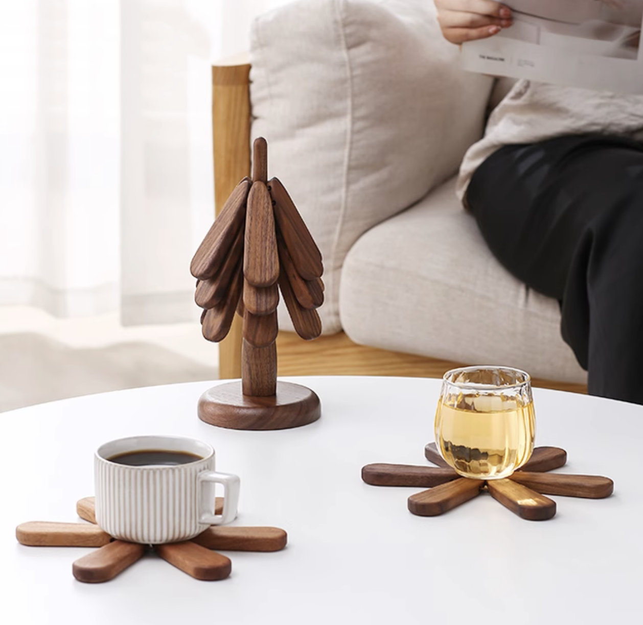 黑胡桃木製作,保留天然木紋與溫潤手感,耐熱防燙,實用耐用,星星、蘋果造型,可用於餐桌擺放熱菜、鍋具或作為杯墊,也能成為溫馨質感的居家擺設。
