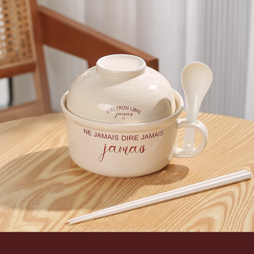 【商品】高品質陶瓷搭配貼合碗口的蓋子設計,保溫防塵且方便收納,容量適中,適合泡麵、米飯、湯品等多種料理,亦可直接放入微波爐加熱。