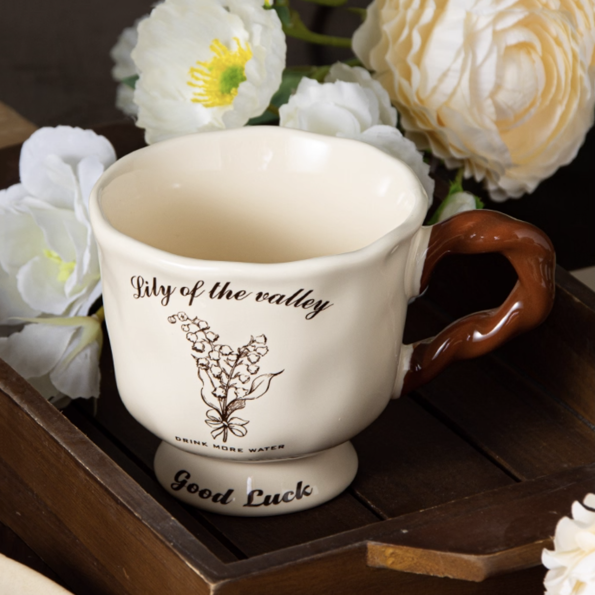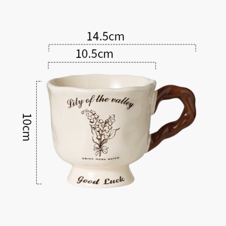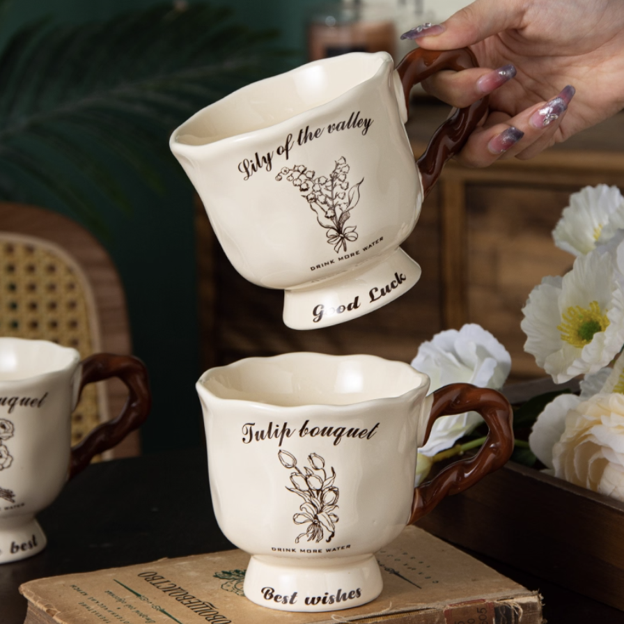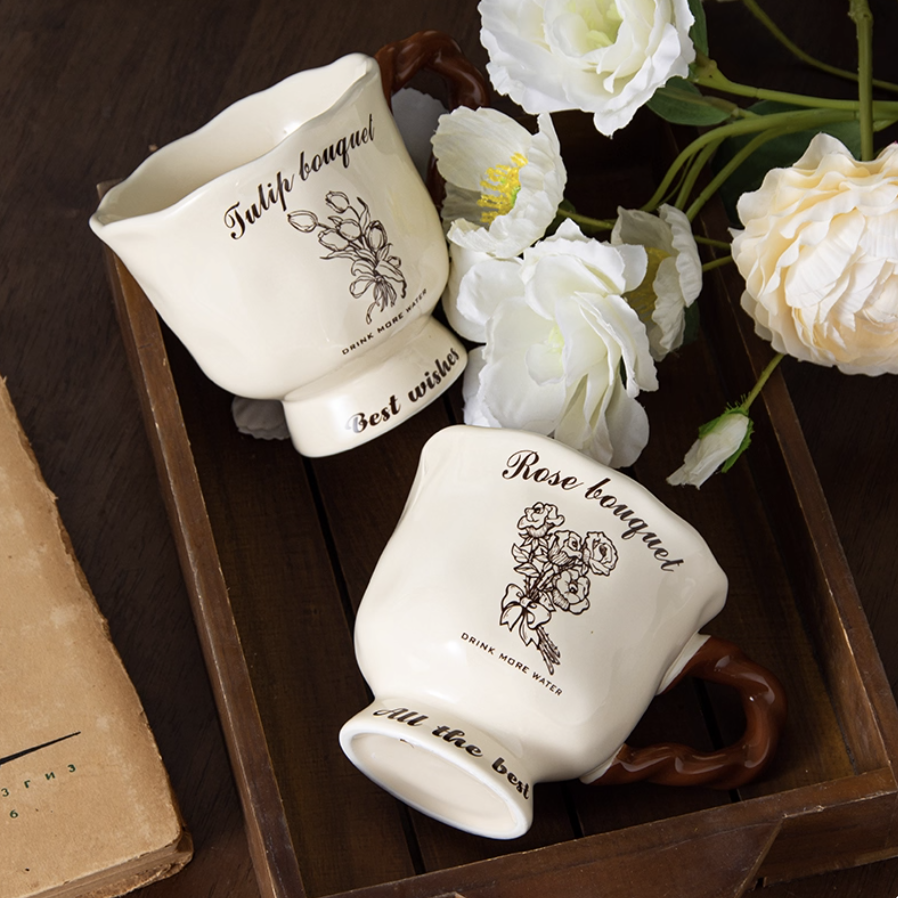 法式復古字樣搭配浮雕花卉圖案,優雅中帶有文藝氣息,獨特造型手柄設計增添趣味性,搭配專屬禮盒包裝,不僅適合日常飲品使用,也是饋贈禮物、下午茶擺拍與居家佈置的精緻選物。