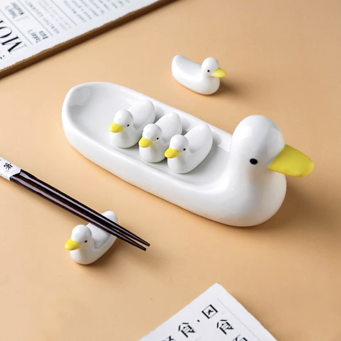 萌趣小鴨造型,讓餐桌瞬間充滿童趣與溫馨氛圍,小鴨筷架不僅實用,還能保持餐桌整潔衛生,一整組大小鴨鴨成隊,宛如可愛的「小鴨排排走」,為用餐時光增添驚喜與趣味。