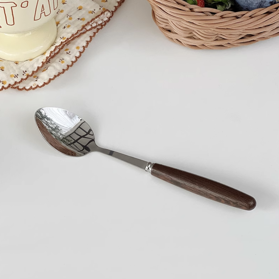 木質手柄搭配不鏽鋼餐具,質感細膩又耐用,展現簡約自然的用餐氛圍,一套包含叉子、叉、湯匙及筷子,滿足中西式餐點的不同需求,手柄握感舒適,實用且美觀,無論是日常用餐或宴客餐桌都能提升品味,展現質感生活。