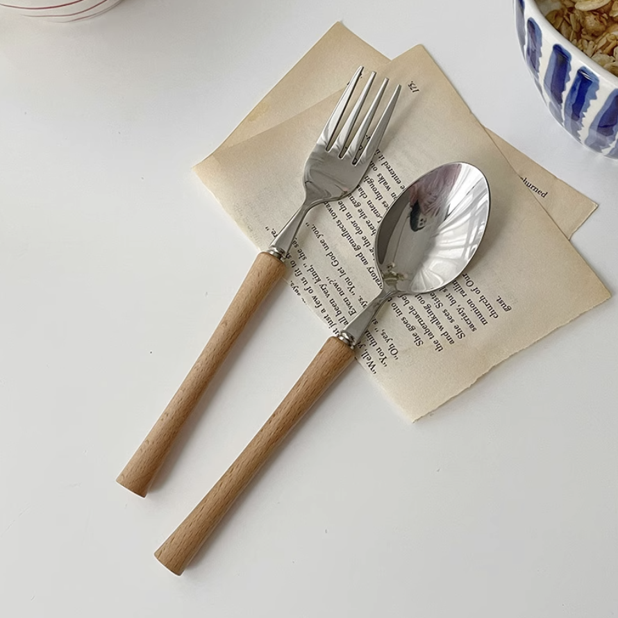 選用淺色木質手柄搭配不鏽鋼材質,設計簡約清爽,展現自然溫潤的生活質感,餐具握感舒適,大小適中,適合日常用餐或下午茶點心,無論單獨使用或搭配整套餐具組,皆能輕鬆融入各式餐桌氛圍,讓用餐體驗更優雅自在。