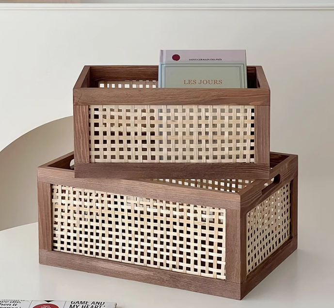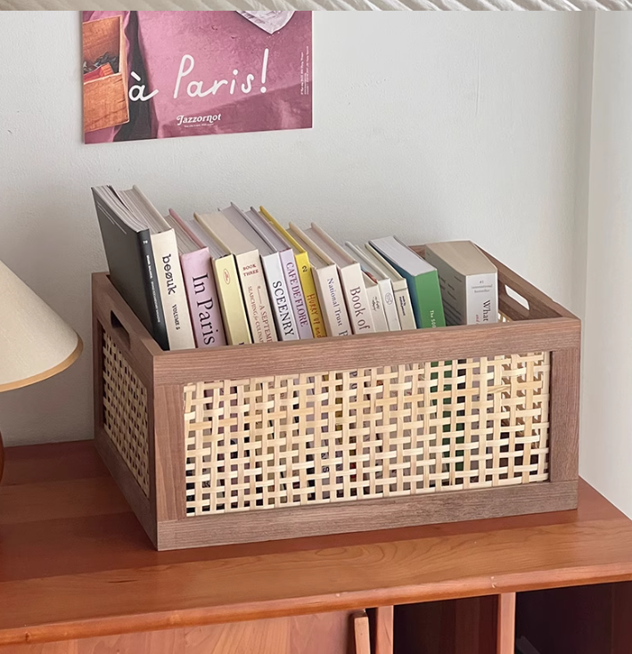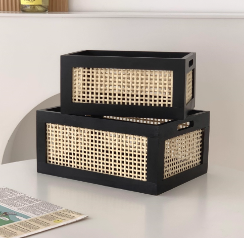 木質框架搭配竹編設計,清新自然又帶點復古味道,隨手一收,就能讓桌面乾淨俐落,收納也能成為美麗的擺設。
