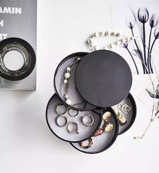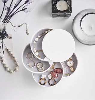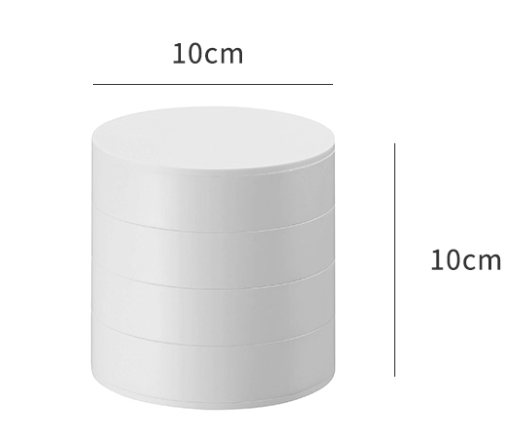 旋轉抽屜設計,收納耳環、戒指、手鍊一目瞭然,四層分隔大容量,輕鬆分類不打結,體積小巧卻超能裝,化妝台瞬間變整齊~