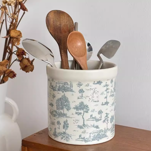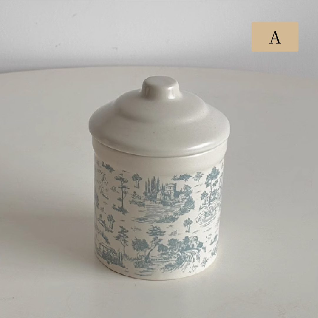 仿古奶油白瓷搭配經典英式插畫,三款不同印花文字設計,宛如從鄉村廚房搬進現代空間,質感收藏與實用收納兼具,無論擺在餐櫃或書架都超加分。