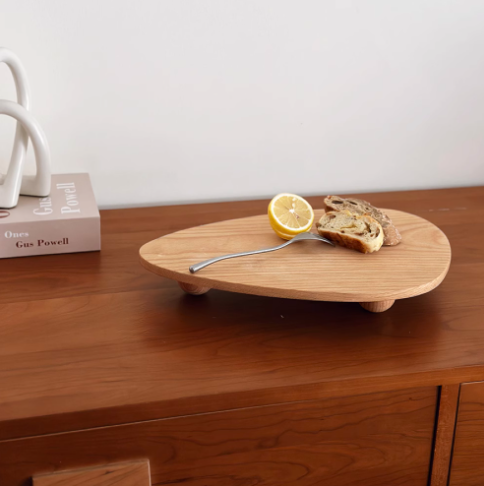 【商品】溫潤的木質紋理搭配圓潤托高設計,既能盛放餐點,也能作為居家小物展示台,自然簡約的風格,讓每一次用餐與佈置都多了一份溫度。
