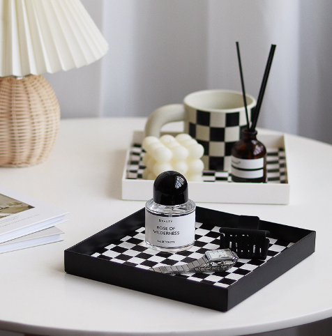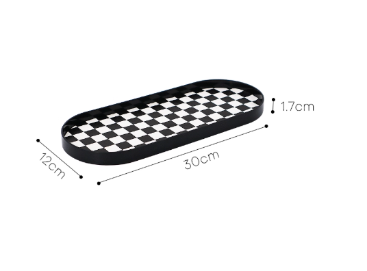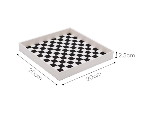俐落的黑白棋盤格設計,簡約又帶點個性,適合盛放茶點、咖啡或作為小物收納盤,讓桌面瞬間多出層次感與時尚氛圍。